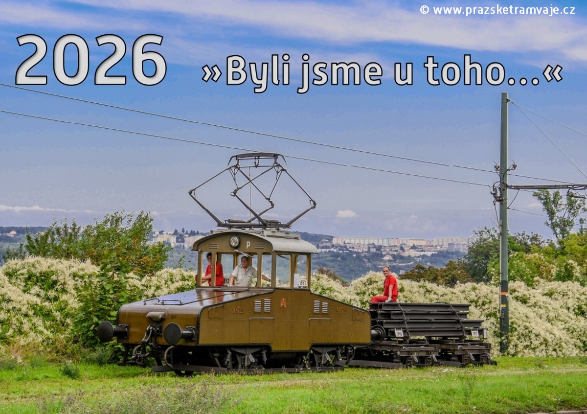 Titulní stránka 2026 nástěnného kalendáře Pražských tramvají 2026 »Byli jsme u toho...«