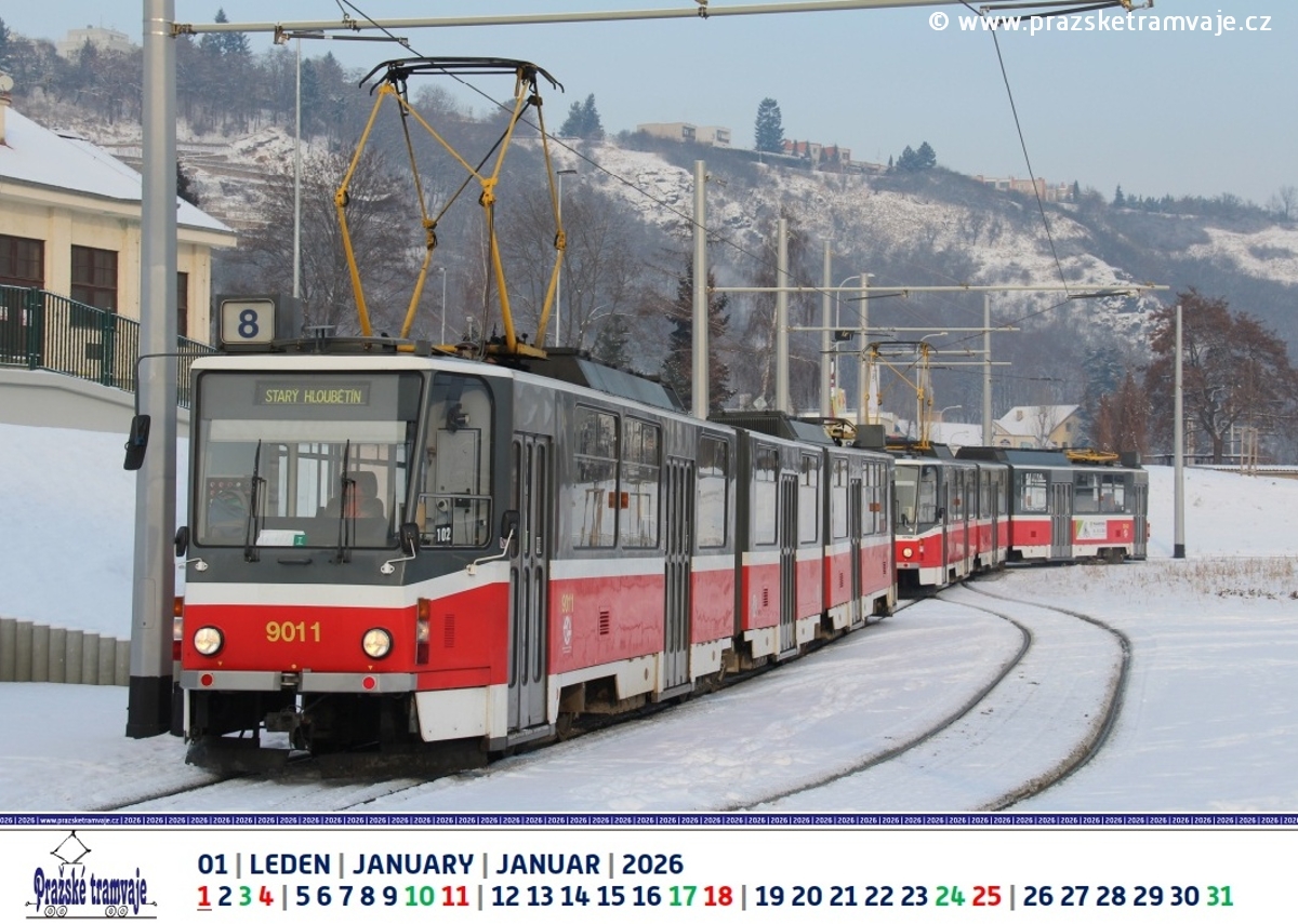 Leden 2026 nástěnného kalendáře Pražských tramvají 2026 »Byli jsme u toho...«