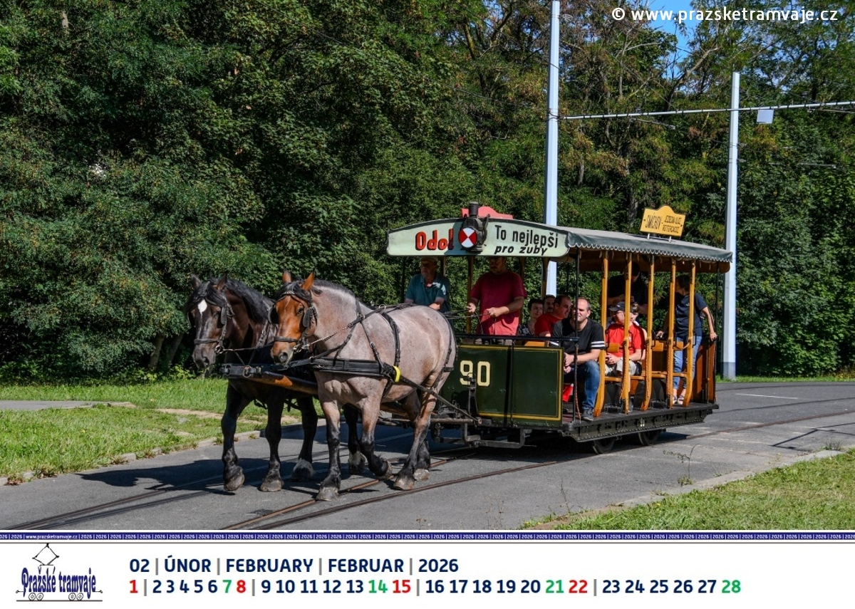 Únor 2026 nástěnného kalendáře Pražských tramvají 2026 »Byli jsme u toho...«
