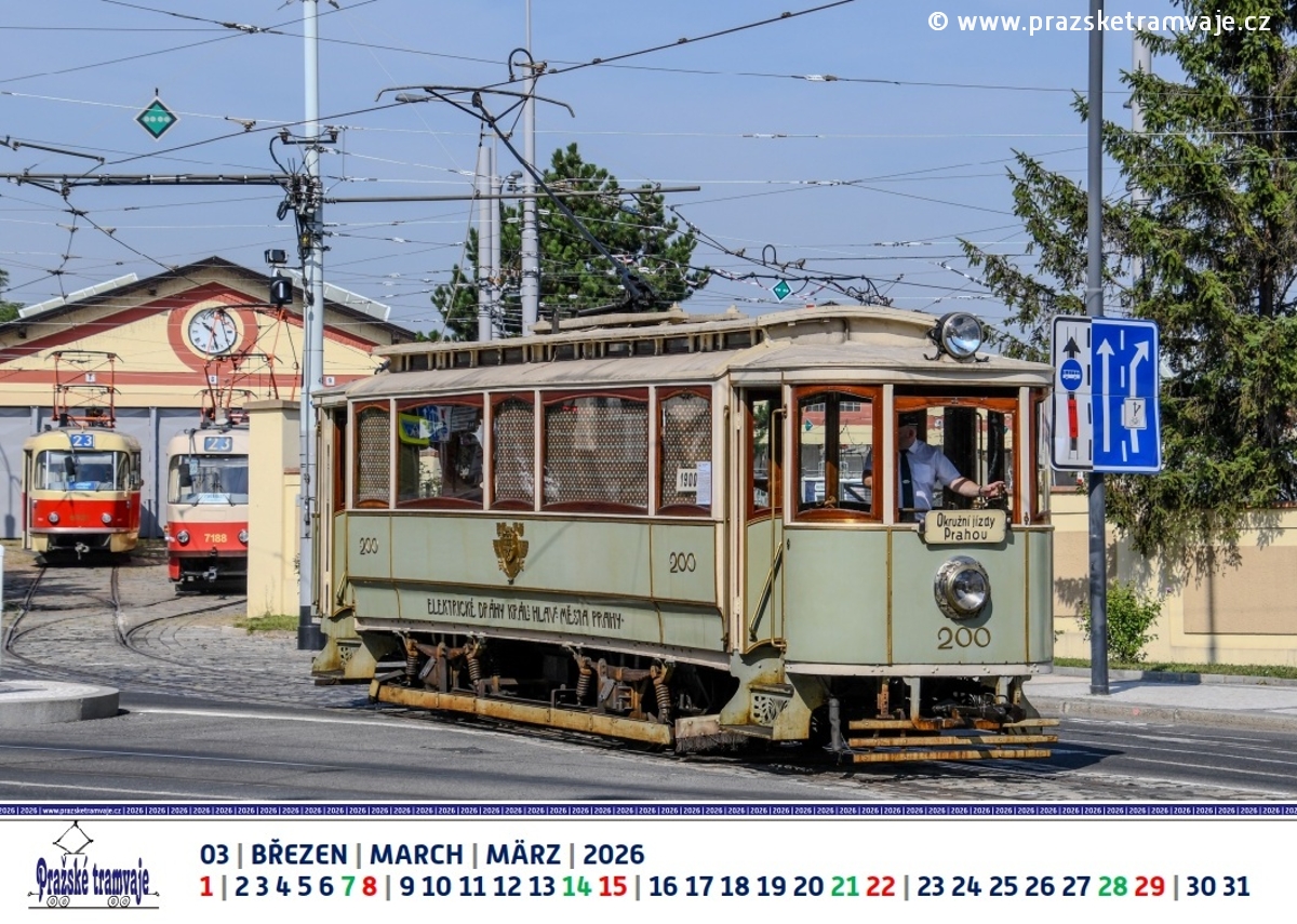 Březen 2026 nástěnného kalendáře Pražských tramvají 2026 »Byli jsme u toho...«