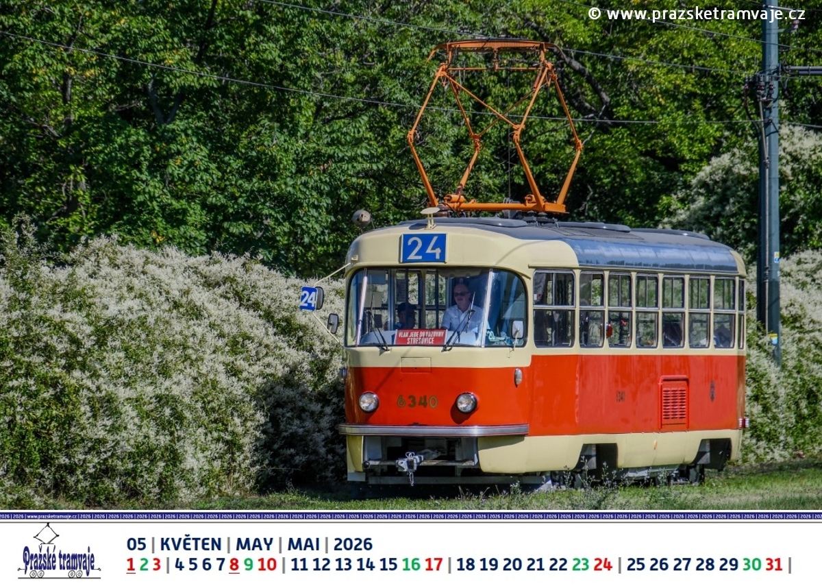 Květen 2026 nástěnného kalendáře Pražských tramvají 2026 »Byli jsme u toho...«