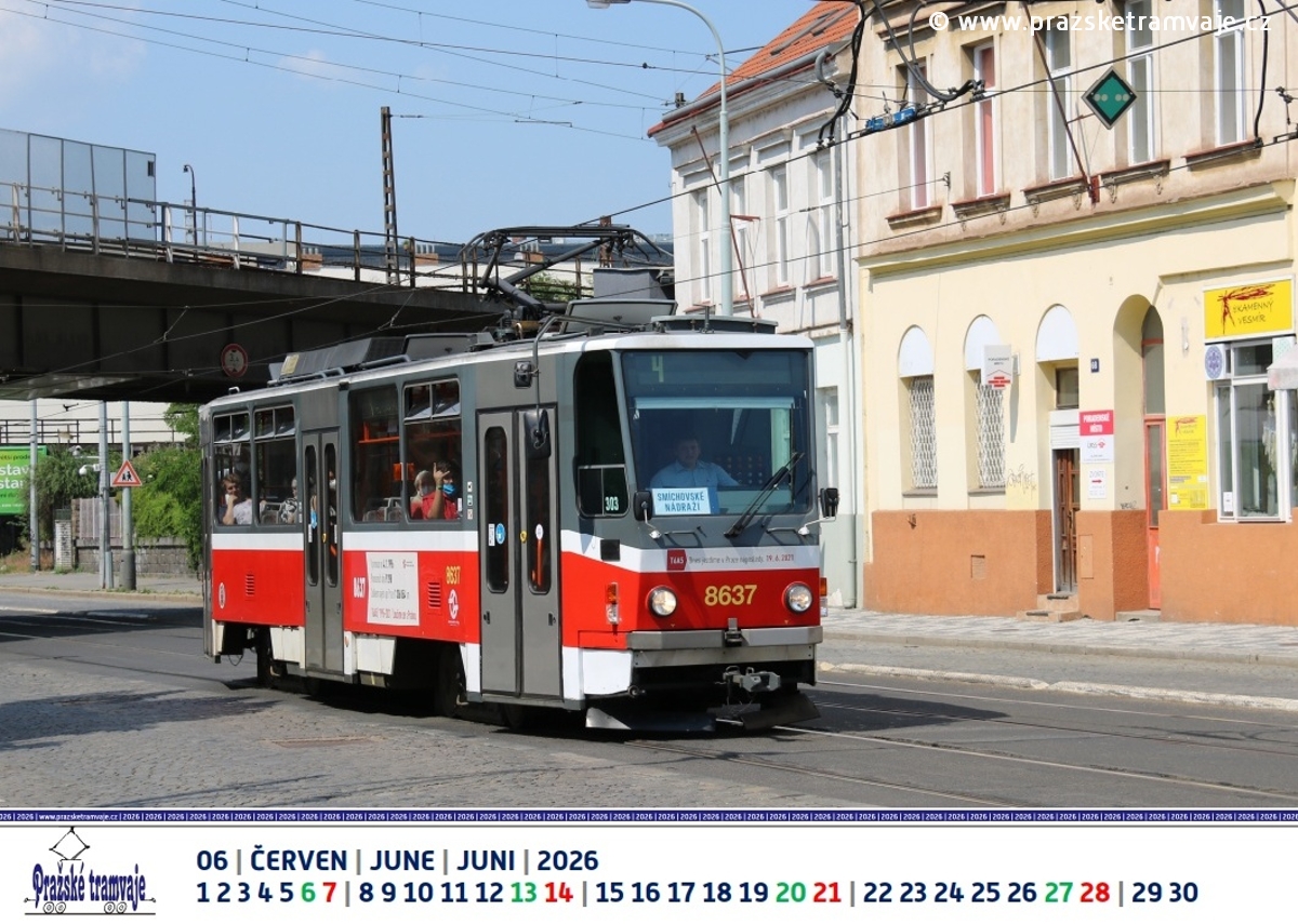 Červen 2026 nástěnného kalendáře Pražských tramvají 2026 »Byli jsme u toho...«