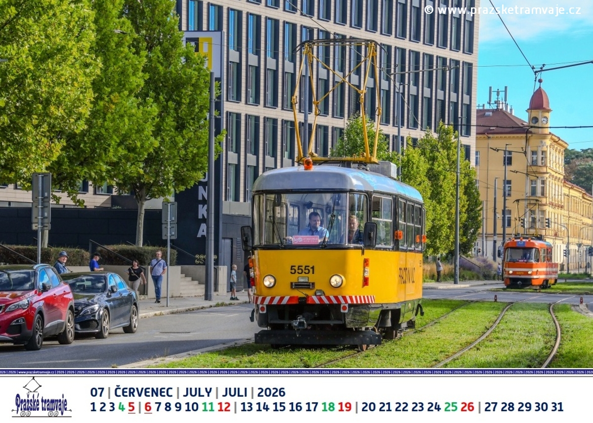 Červenec 2026 nástěnného kalendáře Pražských tramvají 2026 »Byli jsme u toho...«