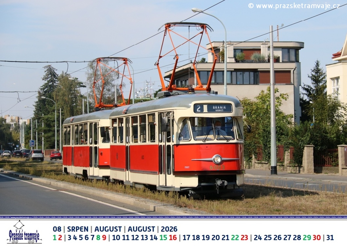 Srpen 2026 nástěnného kalendáře Pražských tramvají 2026 »Byli jsme u toho...«