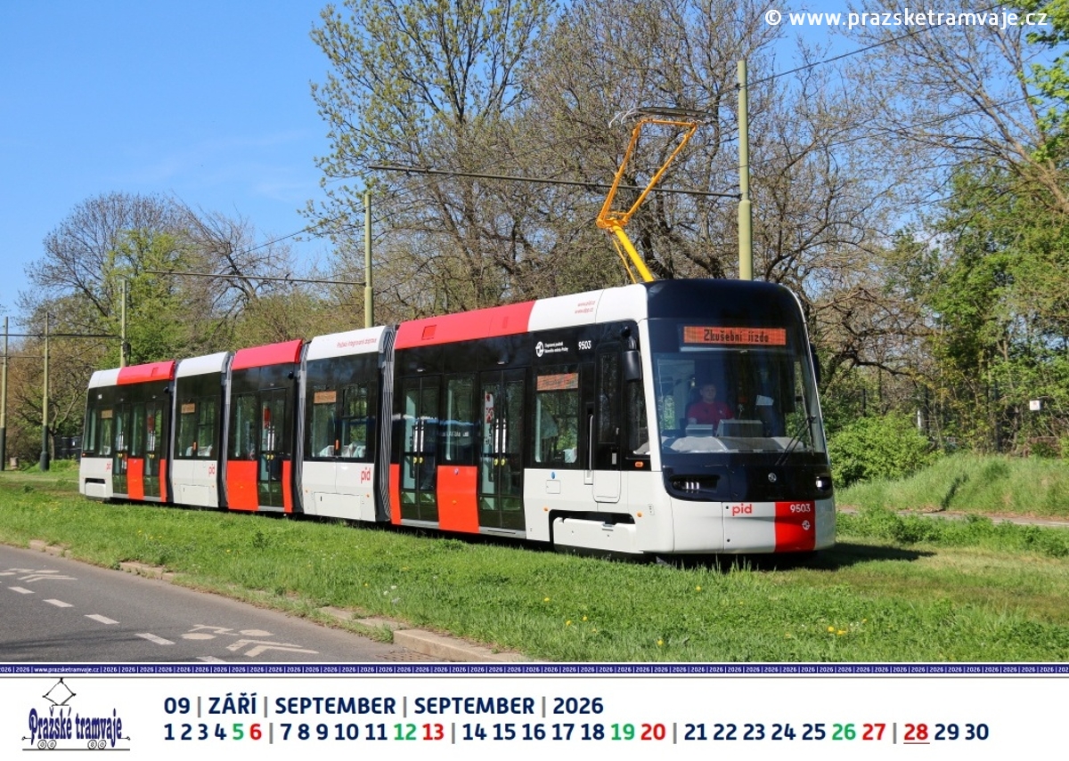 Září 2026 nástěnného kalendáře Pražských tramvají 2026 »Byli jsme u toho...«