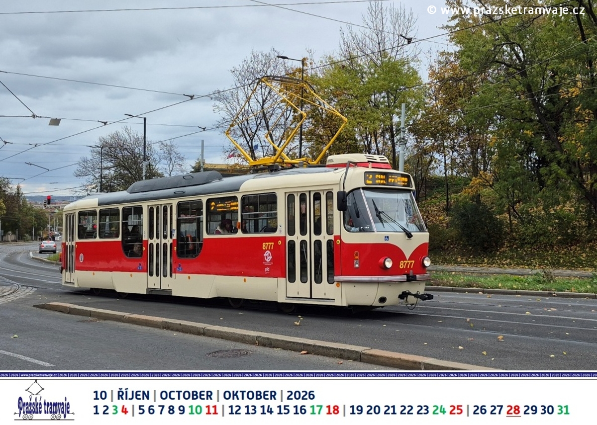 Říjen 2026 nástěnného kalendáře Pražských tramvají 2026 »Byli jsme u toho...«