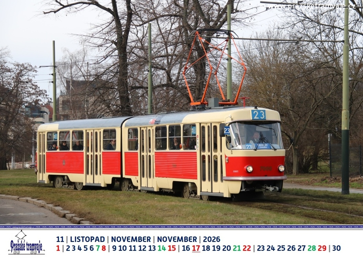 Listopad 2026 nástěnného kalendáře Pražských tramvají 2026 »Byli jsme u toho...«