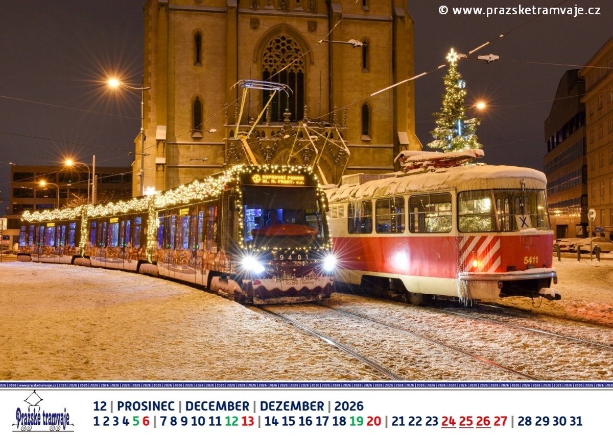 Prosinec 2026 nástěnného kalendáře Pražských tramvají 2026 »Byli jsme u toho...«